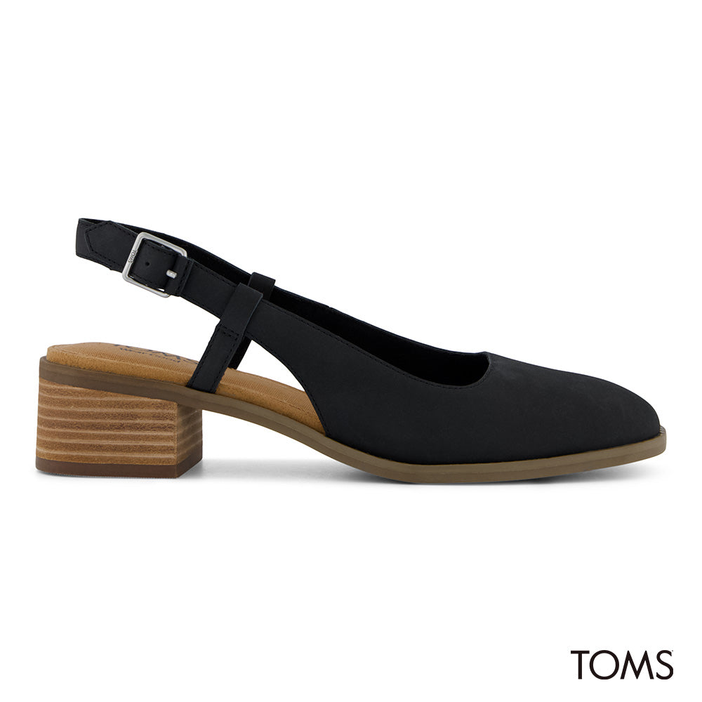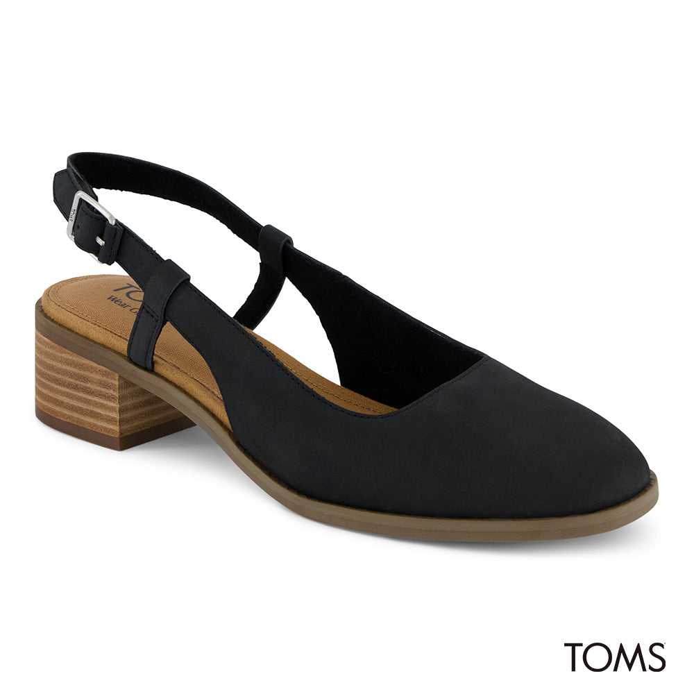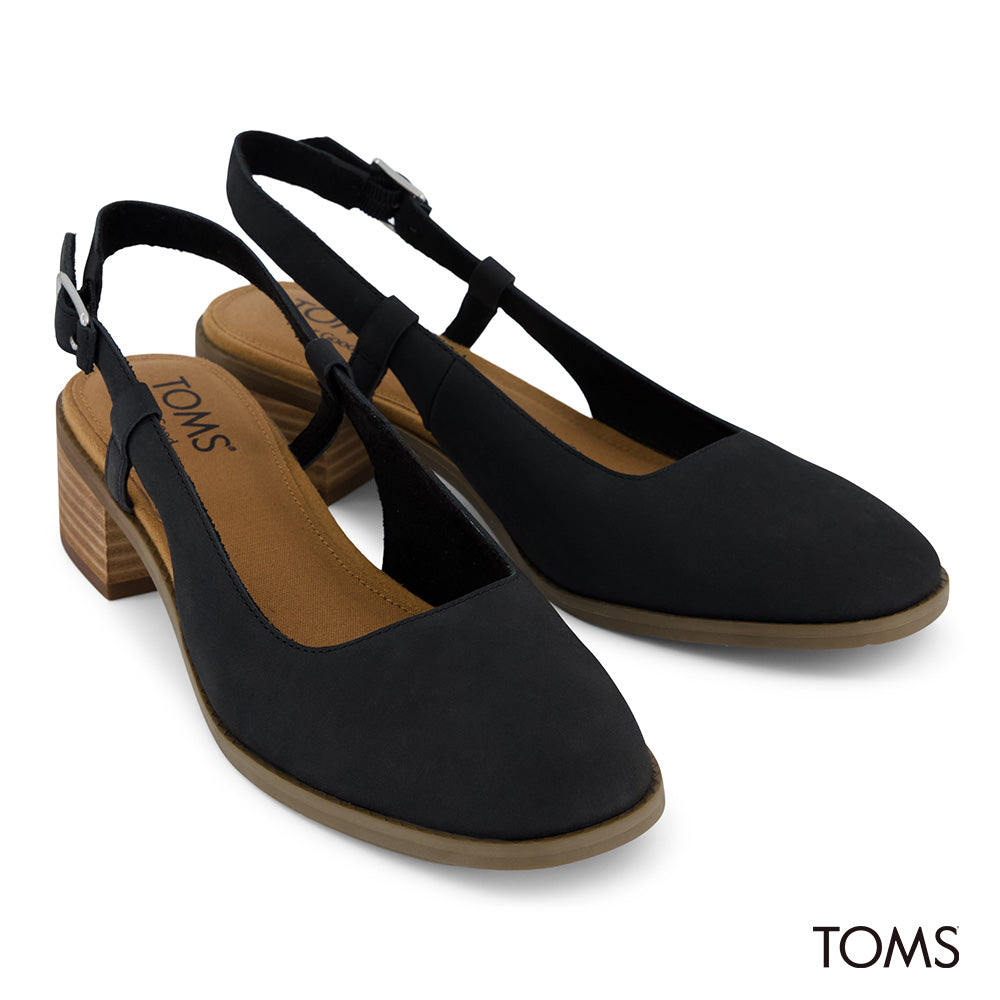 TOMS Women Jaclyn Slingback Black Nubuck Leather Heels
