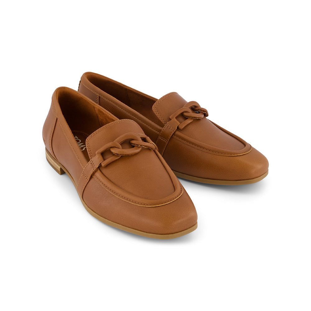TOMS Women Lynette Chain Loafer Amber Brown Leather with chain